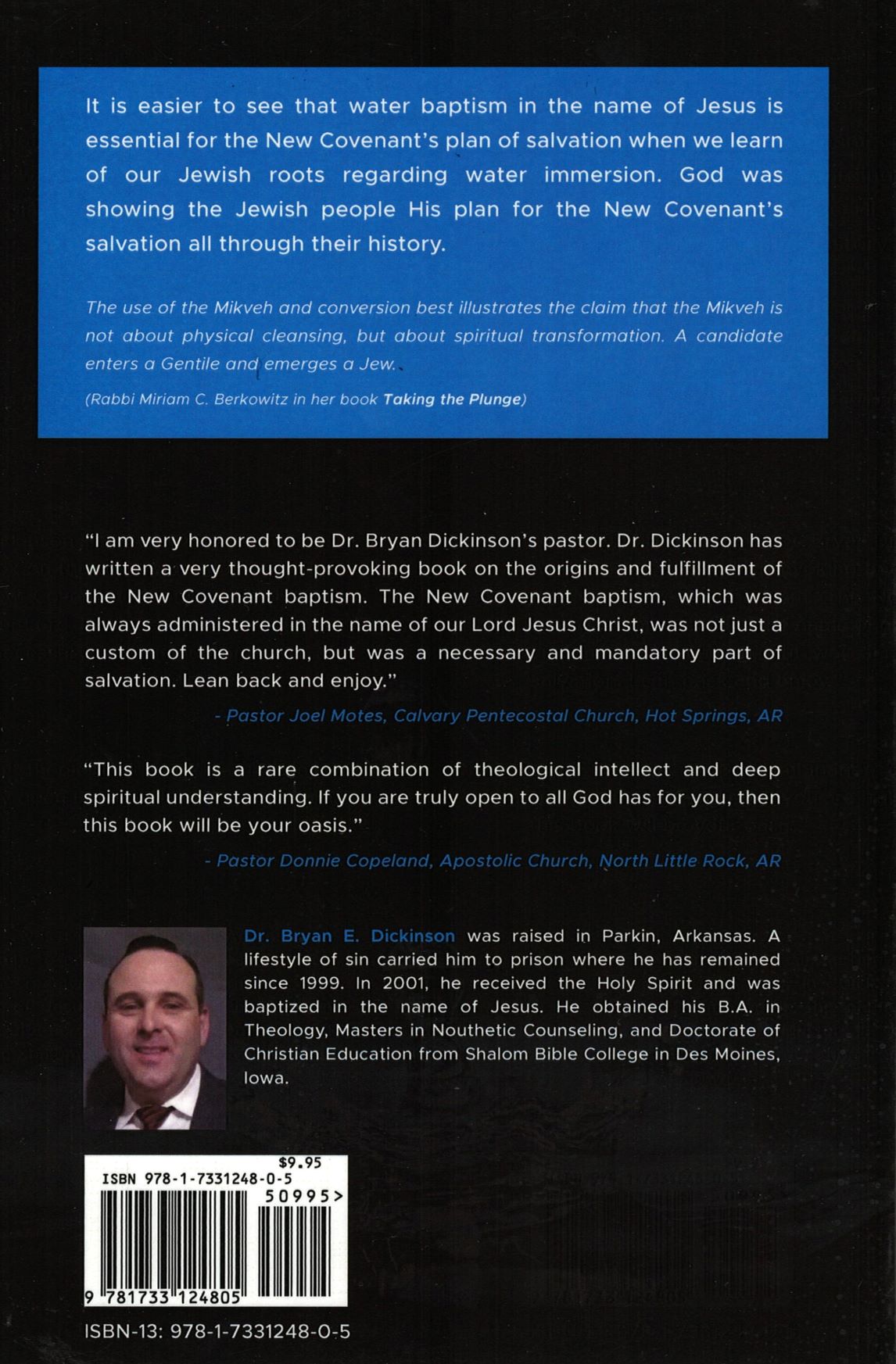 This book provides thought-provoking insight into the origins of water baptism by delving into Jewish roots and showing how that translates into New Covenant water baptism.