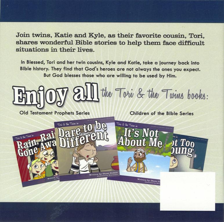 In Blessed, Tori and her twin cousins, Kyle and Katie, take a journey back into Bible history. They find that God's hero's are not always the ones you expect. But God blesses those who are willing to be used by him.