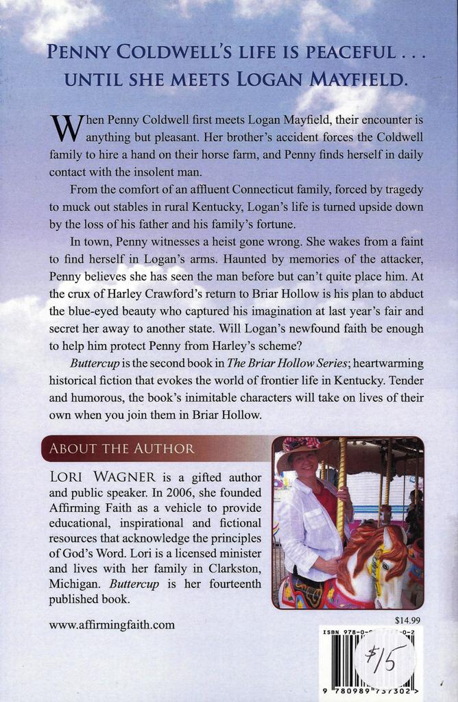 wrong. She wakes from a faint to find herself in Logan's arms. Haunted by memories of the attacker, Penny believes she has seen the man before but can't quite place him. At the crux of Harley Crawford's return to Briar Hollow is his plan to abduct the blue-eyed beauty who captured his imagination at last year's fair and secret her away to another state. Will Logan's newfound faith be enough to help him protect Penny from Harley's scheme? Buttercup is the second book in The Briar Hollow Series; heartwarming historical fiction that evokes the world of frontier life in Kentucky. Tender and humorous, the book's inimitable characters will take on lives of their own when you join them in Briar Hollow.
