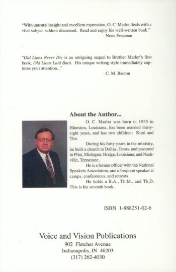 An intriguing sequel to Bro. Marler's first book, Old Lions Laid Back. He weaves the message of the changing power of the gospel throughout this narrative and comes to a surprising climax.