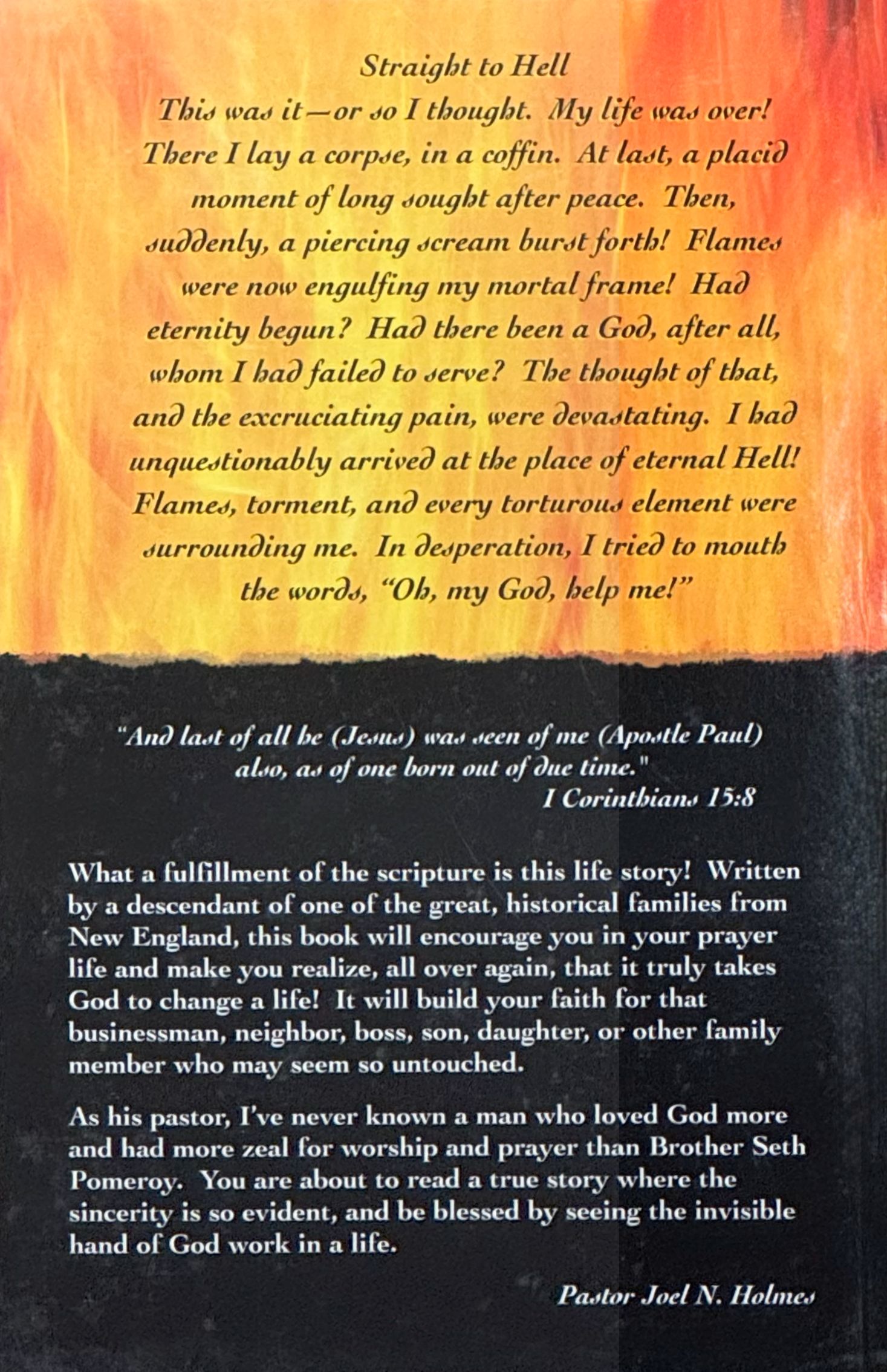 There I lay a corpse, in a coffin. At last, a placid moment of long sought after peace. Then, suddenly, a piercing scream burst forth! Flames were now engulfing my mortal frame! Had eternity begun? Had there been a God, after all, whom I had failed to serve? The thought of that, and the excruciating pain, were devastating. I had unquestionably arrived at the place of eternal Hell! Flames, torment, and every torturous element were surrounding me. In desperation, I tried to mouth the words, "Oh, my God, help me!"