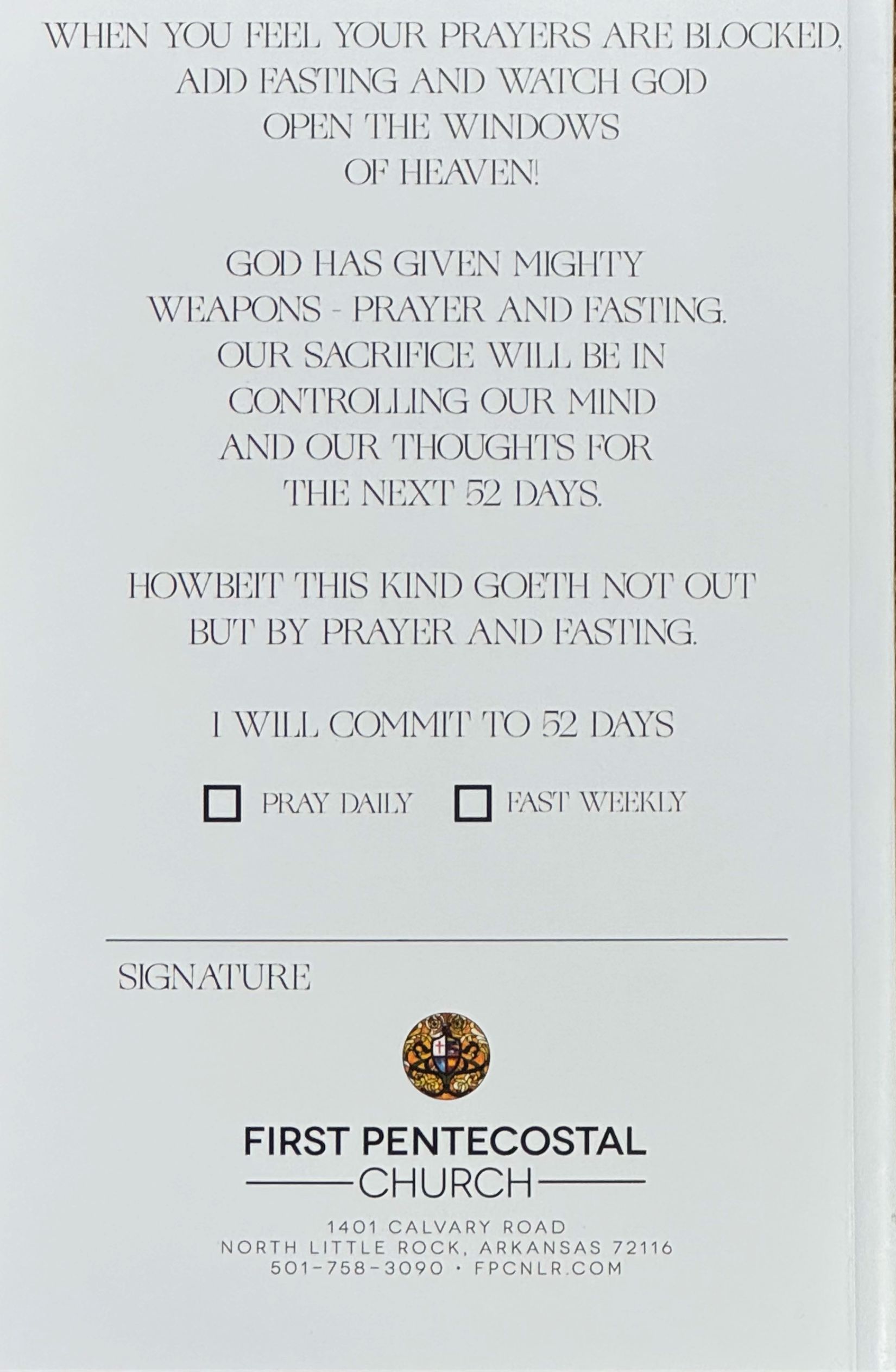 In this book, you will read stories that can only be attributed to the miracle-working power of God and the willingness of people to make a fifty-two-day sacrifice. Many of the testimonies will share how, on the fifty-second day, the Lord intervened, provided, or answered. I know that you will be blessed by the testimonies found within the pages of this book.