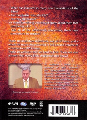 What has inspired so many new translations of the Bible? Are they better than the KJV? Are they all reliable? Is there something you should know about them that isn't being told? Can all of the advertising concerning these new translations be trusted? There are important questions...and all of them...and a whole more are answered in this first volume of a two-lecture DVD series. These are answers that are hard to find. These are also answers that every Bible student should know!