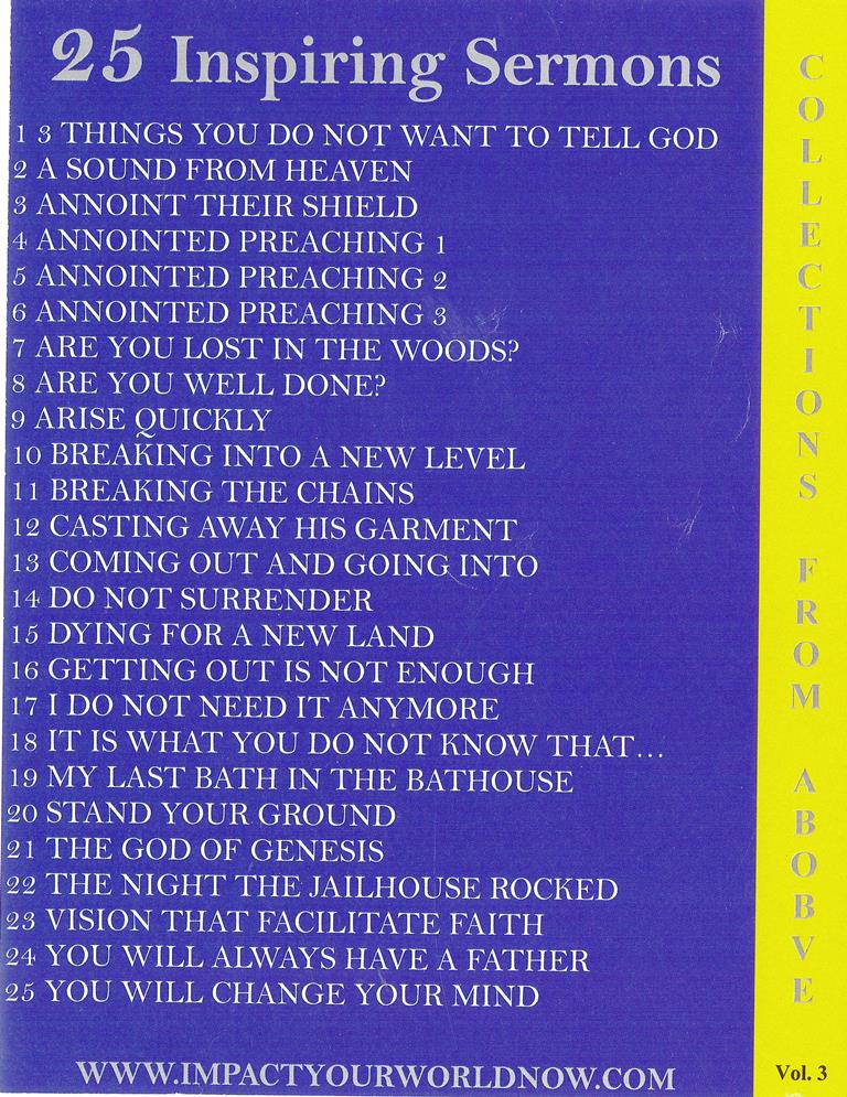 25 Sermons preached by International Evangelist Franco Platania. Sermons were recorded in camp meetings, revivals, conferences and seminars throughout the United States.