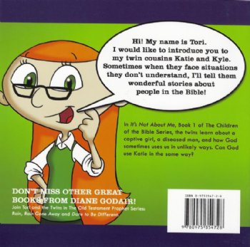 Learn with twins, Katie and Kyle, as their cousin Tori guides them through their troubles with Bible stories. In It's Not About Me, the twins learn about a captive girl, a diseased man, and how God sometimes uses us in unlikely ways. Can God use Katie in the same way?