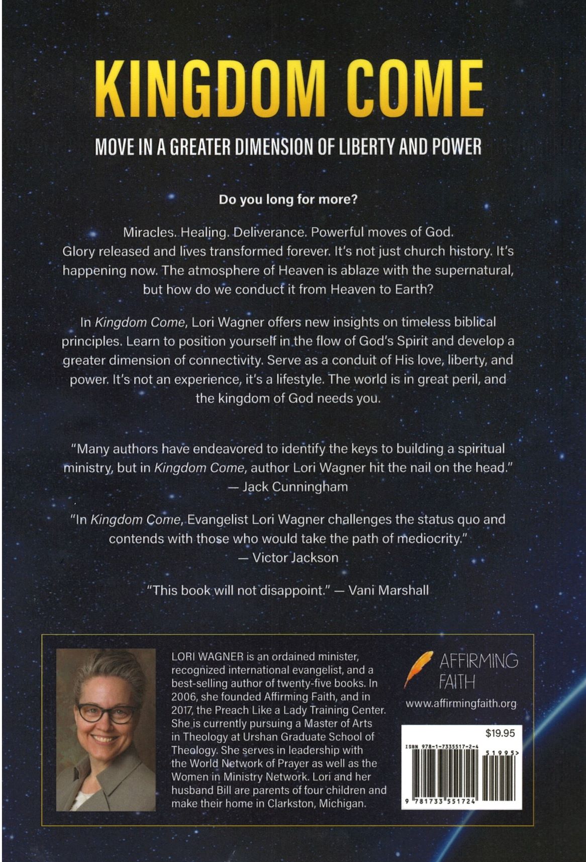 In Kingdom Come, Lori Wagner offers new insights on timeless biblical principles. Learn to position yourself in the flow of God's Spirit and develop a greater dimension of connectivity. Serve as a conduit of His love, liberty, and power. It's not an experience, it's a lifestyle. The world is in great peril, and the kingdom of God needs you.