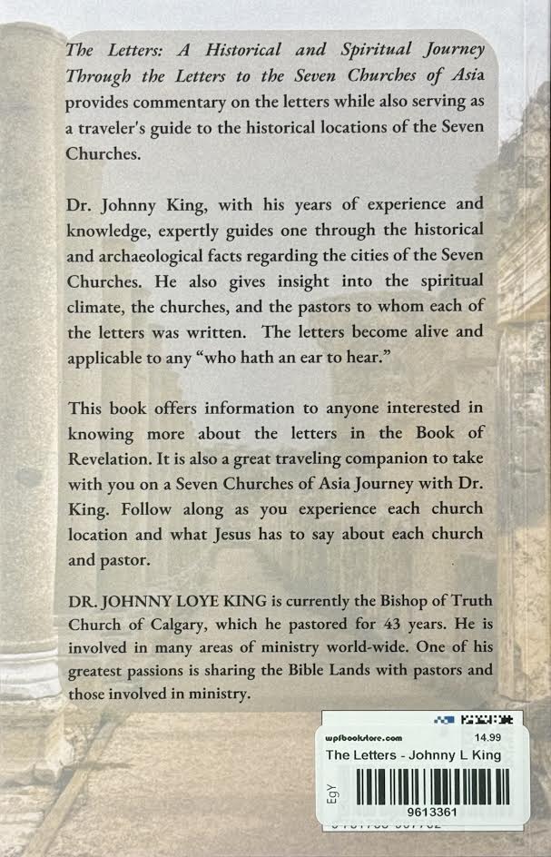 Dr. Johnny King, with his years of experience and knowledge, expertly guides one through the historical and archaeological facts regarding the cities of the Seven Churches. He also gives insight into the spiritual climate, the churches, and the pastors to whom each of the letters was written. The letters become alive and applicable to any "who hath an ear to hear."