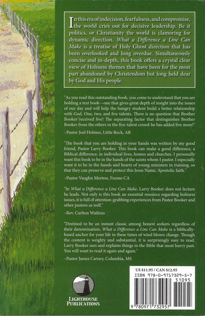 In this era of indecision, fearfulness, and compromise, the world cries out for decisive leadership. Be it politics, or Christianity the world is clamoring for dynamic direction. "What a Difference a Line Can Make" is a treatise of Holy Ghost direction that has been overlooked and long overdue. Simultaneously concise and in-depth, this book offers a crystal clear view of Holiness themes that have been for the most part abandoned by Christendom but long held dear by God and His people.